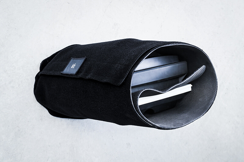 脱着可能なロゴテープ。テープを活用することで、使用方法に幅を持たせることも可能。